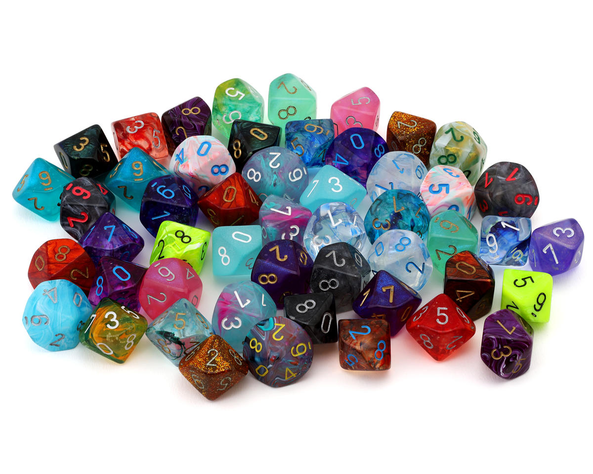 Nota: Cada bolsa de dados incluye un surtido aleatorio de dados D10 de varias series de Chessex.