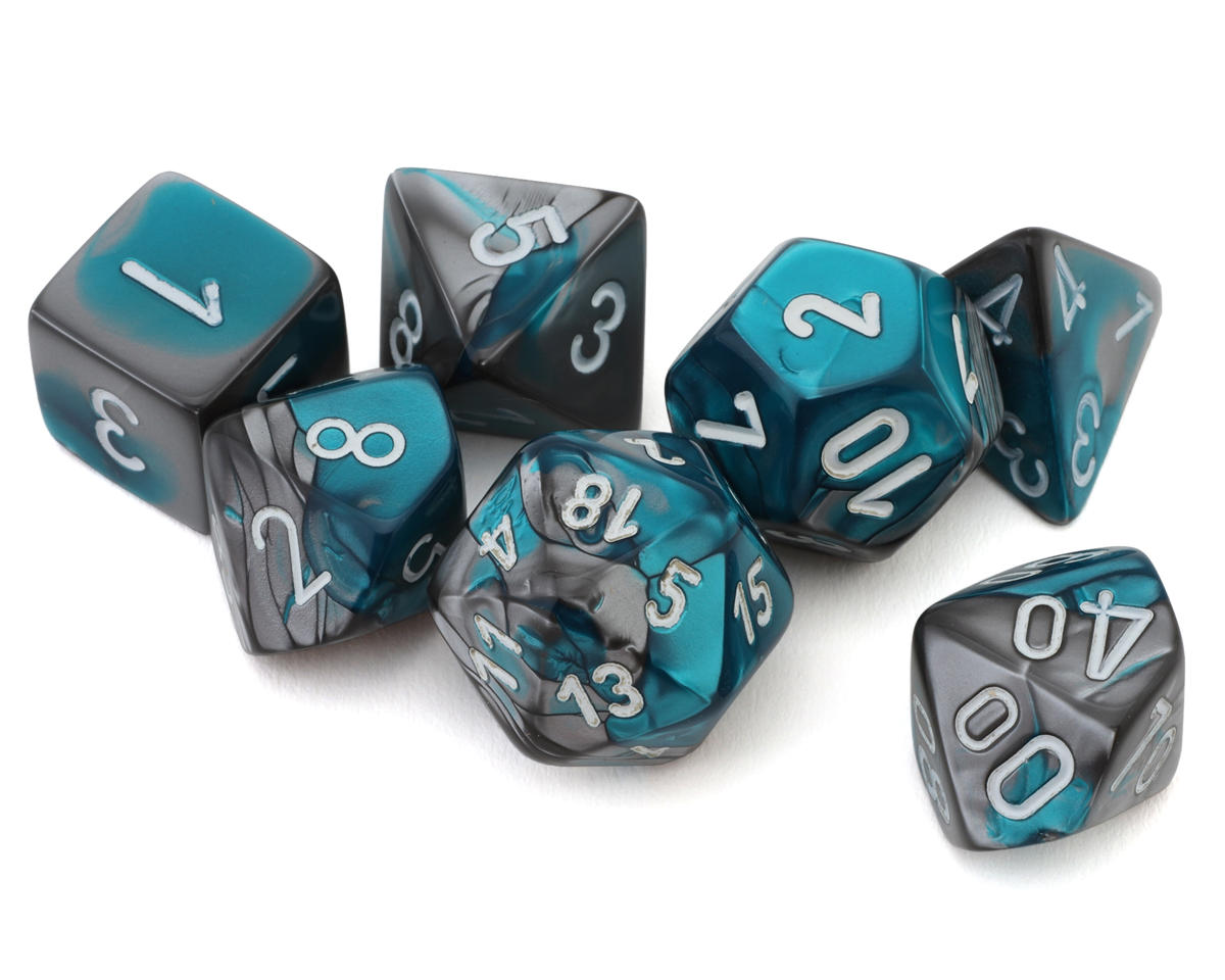 El Set de 7 dados poliédricos Gemini en color Acero-Verde azulado/Blanco de Chessex es perfecto para los entusiastas de los RPG de mesa, incluyendo juegos como Dungeons & Dragons. Este set bellamente diseñado cuenta con siete dados fabricados con precisión en color acero-verde azulado con números blancos, brindando estilo y confiabilidad para tu experiencia de juego.