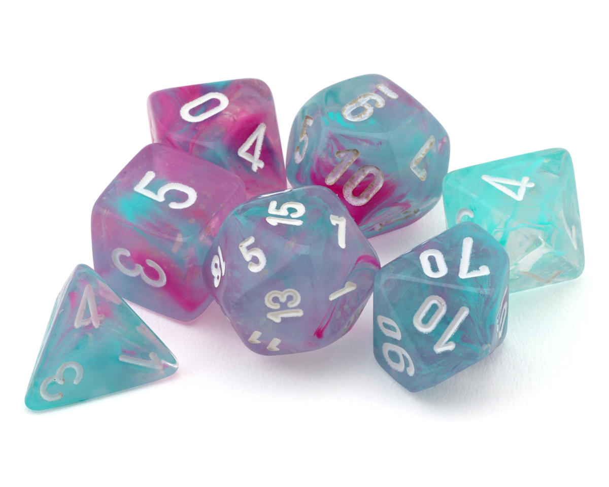 El set de 7 dados Nebula Mini-Hedral de Chessex es una adición fascinante para cualquier colección de RPG de mesa. Con un impresionante patrón de color Wisteria y numeración blanca, este set está diseñado para mejorar tu experiencia de juego de rol con elegancia y practicidad. Cada dado está fabricado para ofrecer un rendimiento constante, mientras que su tamaño compacto asegura un transporte fácil para los jugadores en movimiento. Este set incluye siete dados con formas únicas, perfectos para juegos populares como Dungeons & Dragons. Empacados en una vitrina de exhibición duradera con acolchado de espuma, estos dados también cuentan con el efecto Luminary de Chessex, que crea un encantador brillo similar a las estrellas en la oscuridad o bajo luz negra para dar más atmósfera durante el juego.