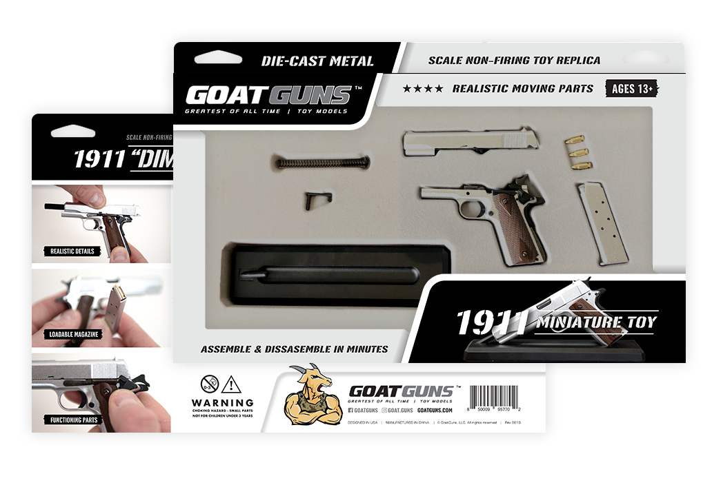 Piezas de metal diecast auténticas en nuestra versión a escala 1:2.5 de la 1911. El seguro de pulgar y las acciones de la corredera son funcionales.