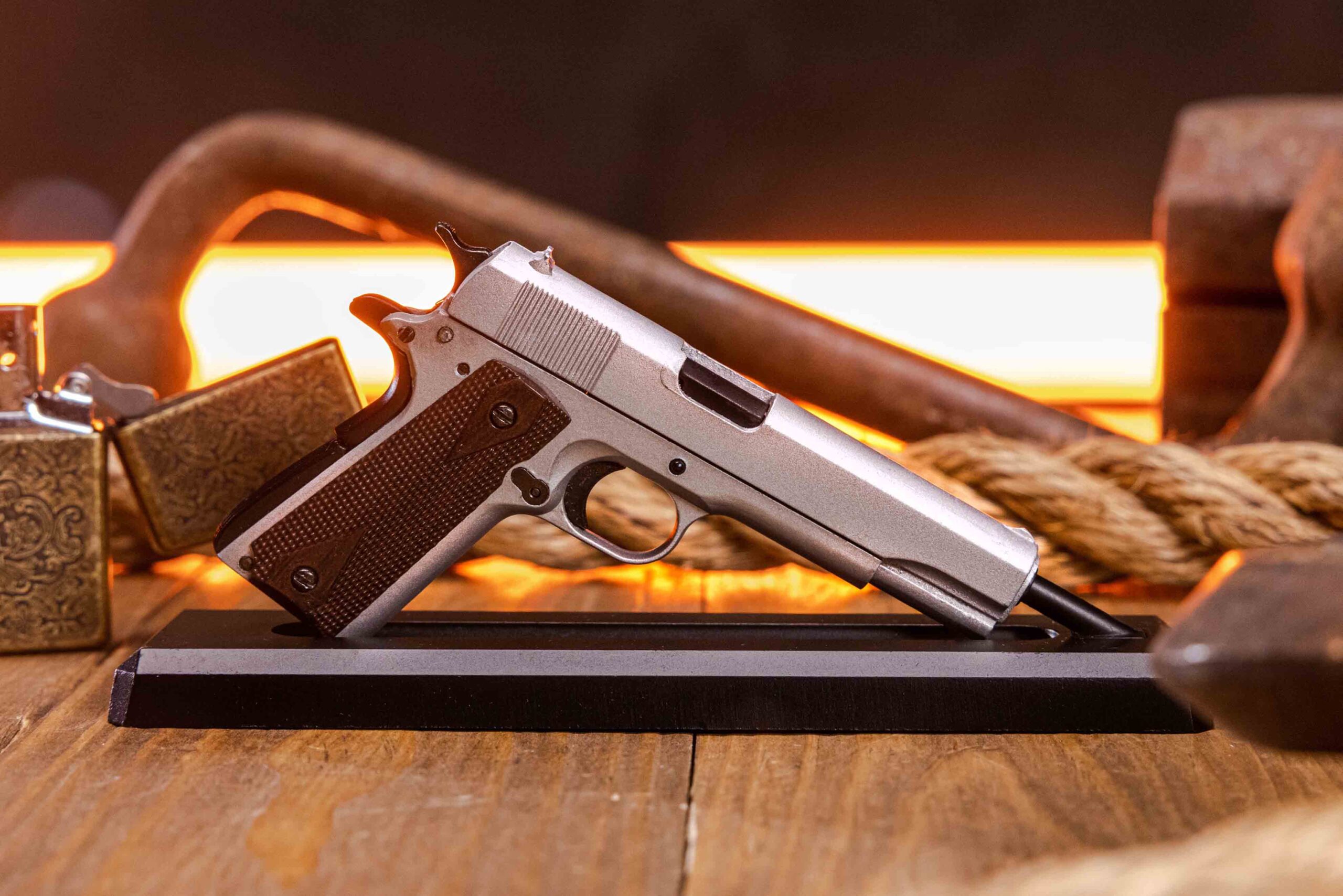 MINIATURA 1911 PLATEADA, MAQUETA A ESCALA 1:2.5 APODADA ‘DIME’