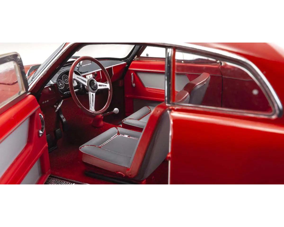 Este es el modelo Diecast a escala 1/18 del Alfa Romeo Giulietta SV Mille Miglia 1956 de Kyosho. Este modelo altamente detallado replica el liviano Giulietta Sprint Veloce que compitió en la legendaria Mille Miglia de 1956, la icónica carrera de resistencia de 1.000 millas por caminos abiertos a través de Italia. Con su avanzado motor twin-cam de 1,3 litros diseñado por Giuseppe Busso y su carrocería aerodinámica de Bertone, el Giulietta SV superaba con creces a competidores con motores mucho más grandes. Esta réplica diecast captura la decoración auténtica de carrera del auto y el espíritu de uno de los eventos más legendarios del automovilismo.