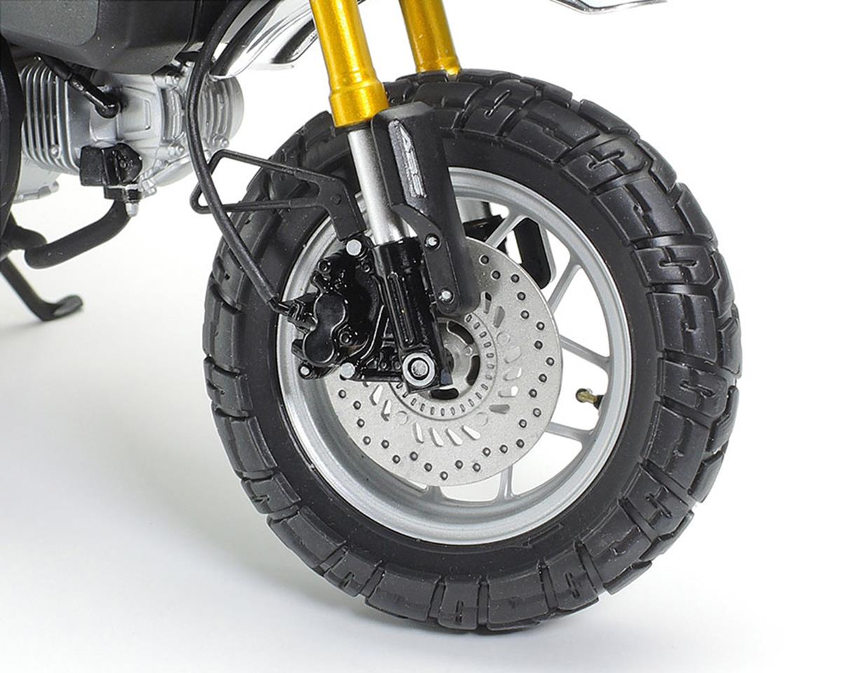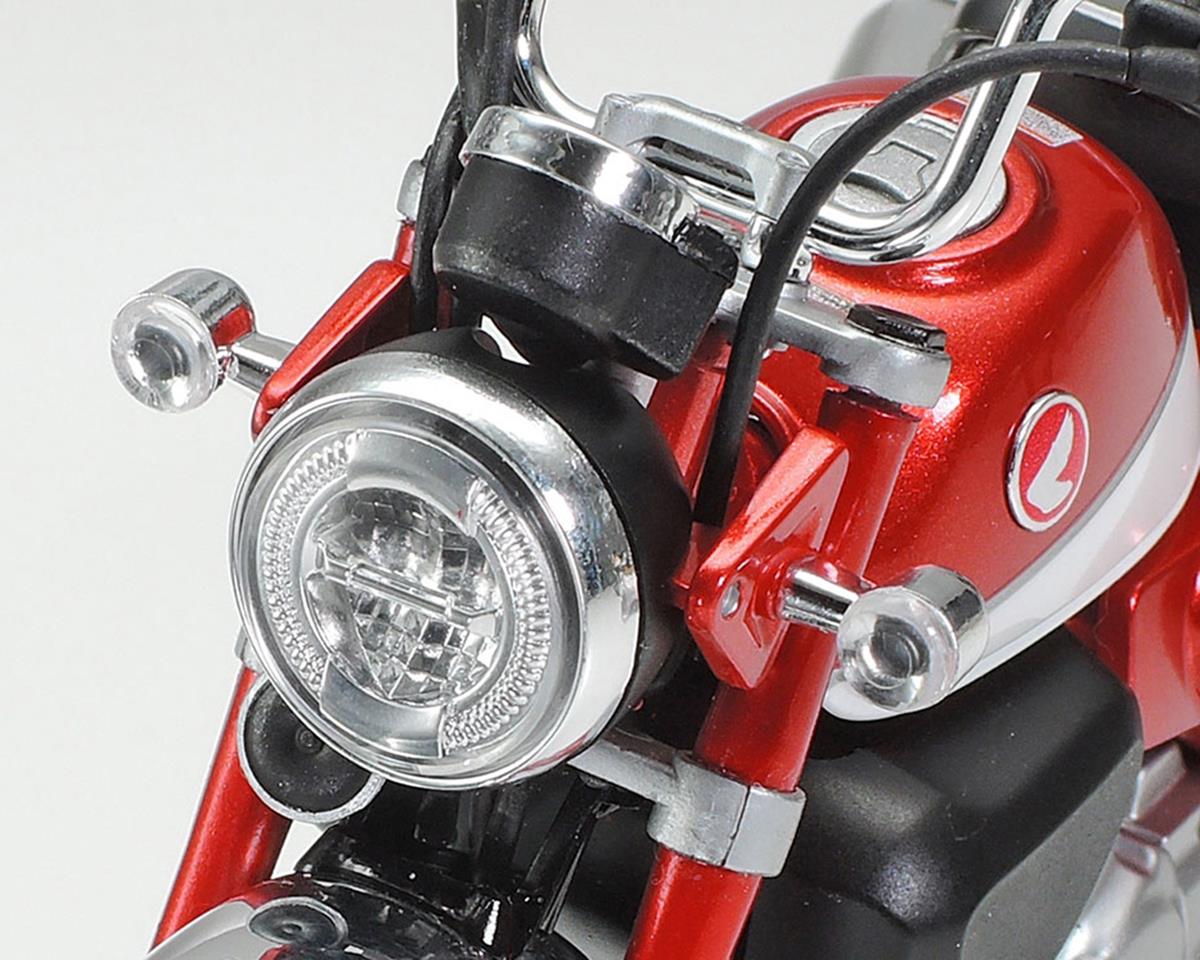 El Kit para armar Tamiya Honda Monkey 125 1/12 recrea la Honda Monkey 125. La línea Monkey se vendió por primera vez en Japón en 1967 y pronto ganó un reconocimiento mundial duradero con su diseño pequeño pero alegre. La Monkey 125 cuenta con un motor más grande de 124cc, pero mantiene el encanto pícaro característico de la Monkey: neumáticos anchos, motivos de diseño redondeados para el faro delantero, el velocímetro y más, además de guardabarros cromados relucientes y la cubierta del silenciador.