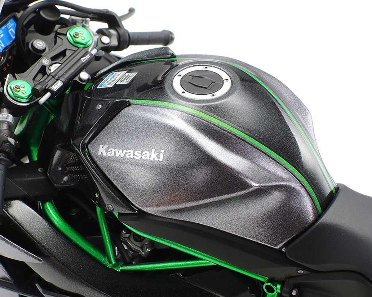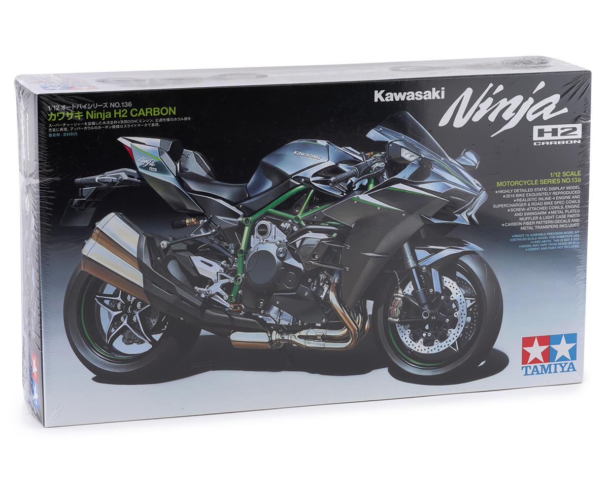 El kit para armar de motocicleta Tamiya Kawasaki Ninja H2 Carbon 1/12 representa la Ninja H2 Carbon. Esta motocicleta es un modelo de alta gama dentro de la línea Ninja H2 (versiones de calle de la H2R de circuito representada en el kit TAM14131) disponible desde 2017, con un carenado superior exclusivo de fibra de carbono, un motor mejorado de 205 hp, una unidad de amortiguación trasera Öhlins y otras mejoras en sus amplias asistencias electrónicas de conducción.