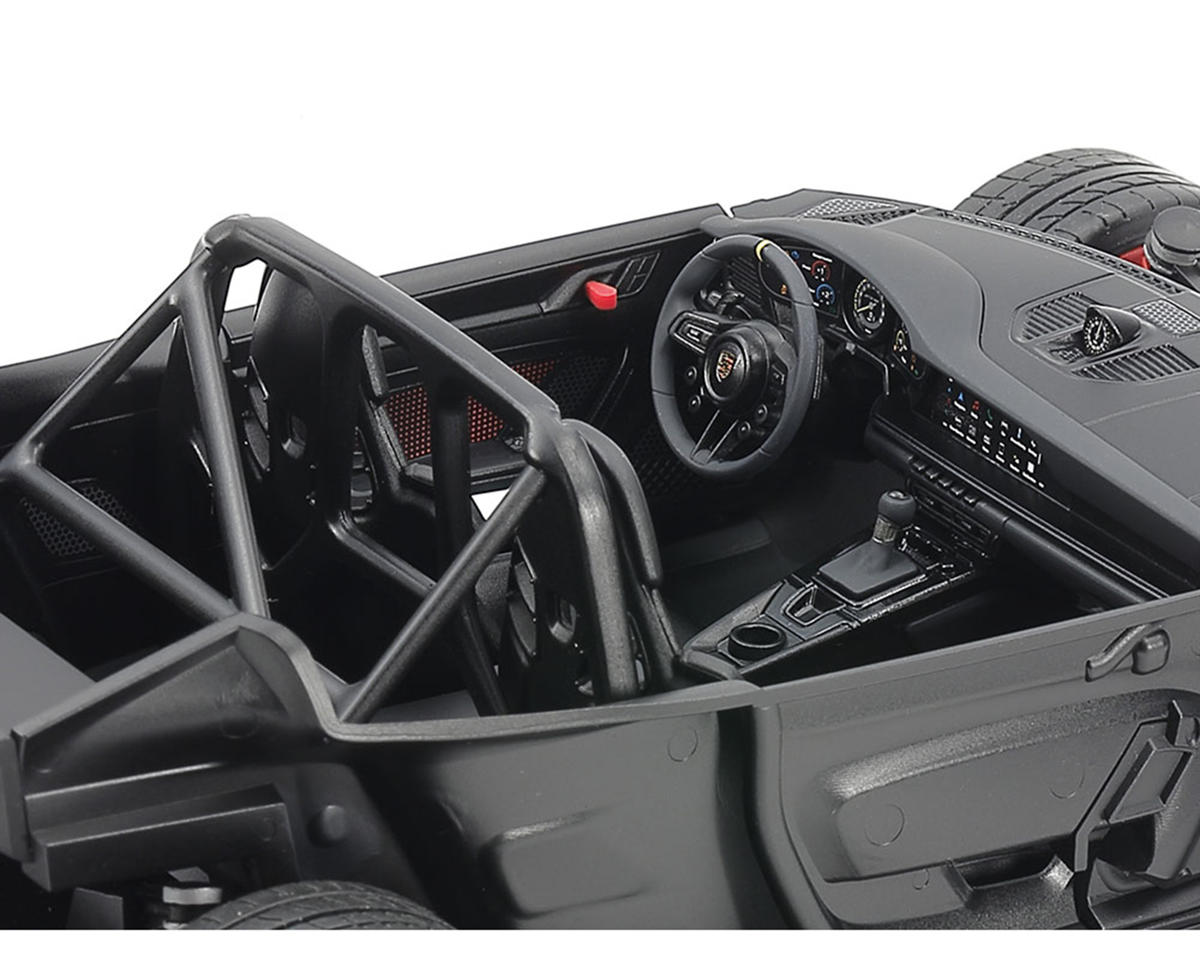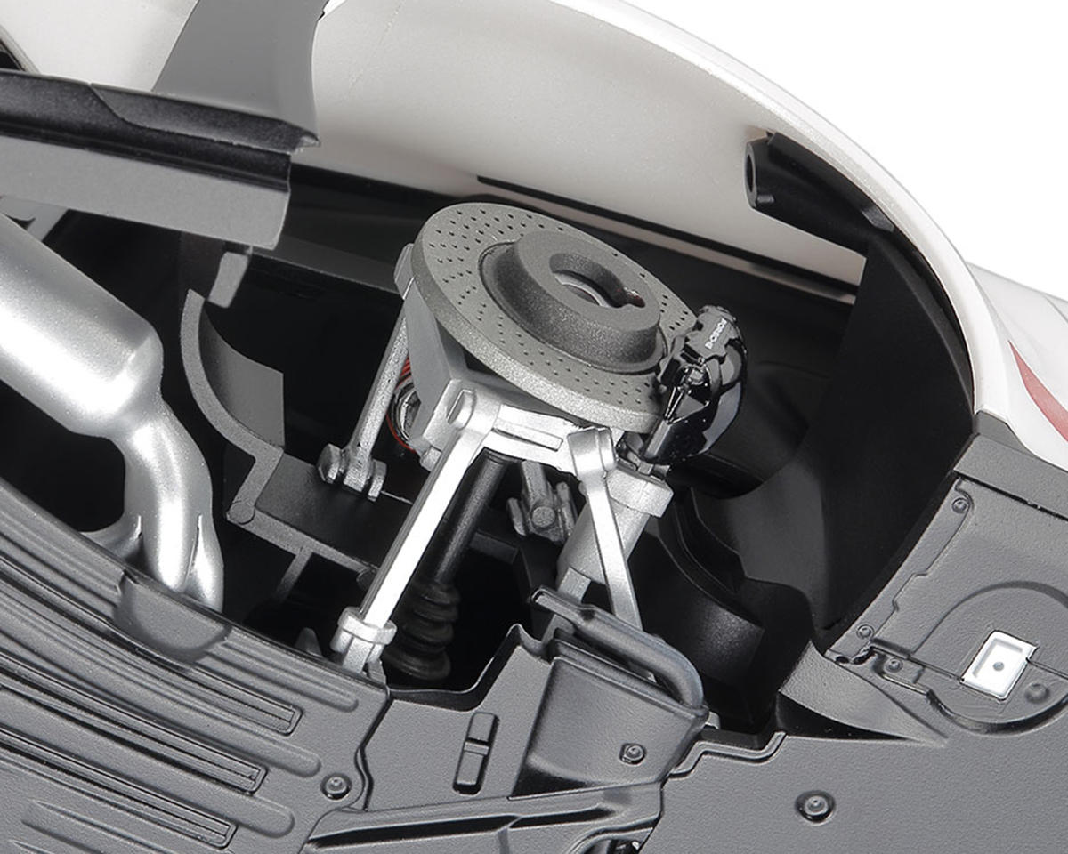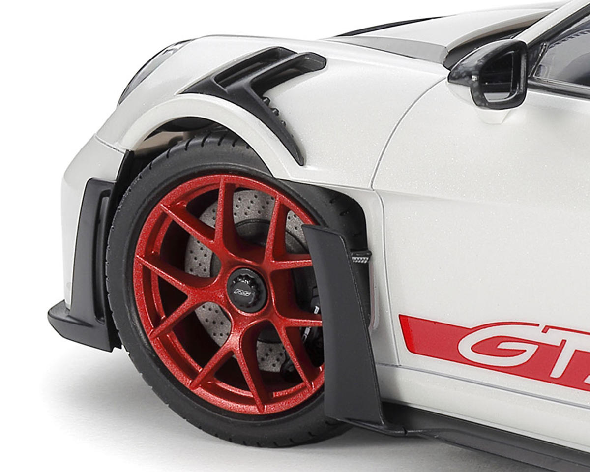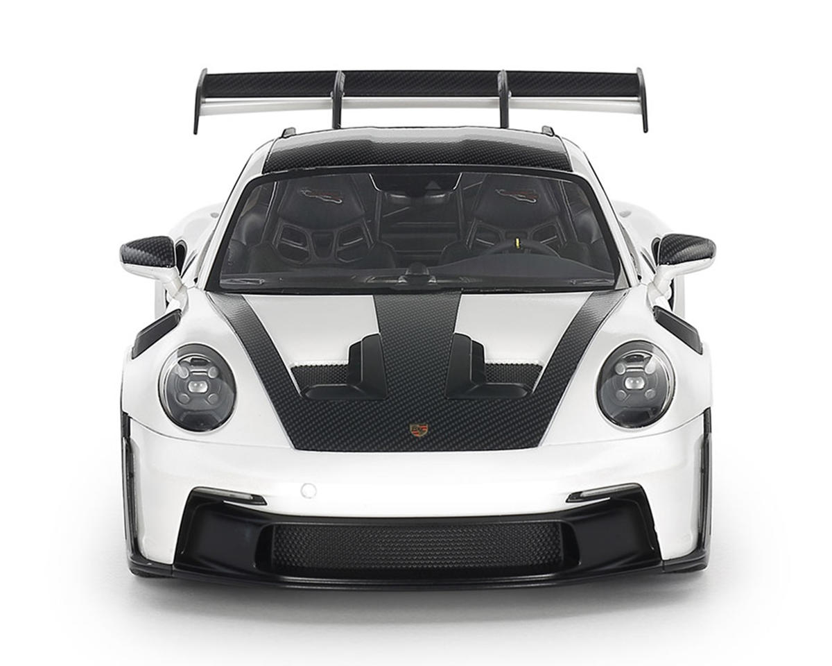 Este kit de plástico para armar Tamiya Porsche 911 GT3 RS 992 replica fielmente el auto de calle de alto rendimiento presentado en 2022. El Porsche 911 GT3 RS 992 representa la cúspide de la ingeniería inspirada en los circuitos, con mejoras aerodinámicas como aletas de flujo de aire, ventilaciones en el capó y los guardabarros, y un gran alerón trasero con funcionalidad de Sistema de Reducción de Arrastre (DRS). Con un uso extensivo de plásticos reforzados con fibra de carbono (CFRP) y un potente motor de seis cilindros y cuatro litros, este modelo captura la esencia de la herencia de carreras de Porsche.