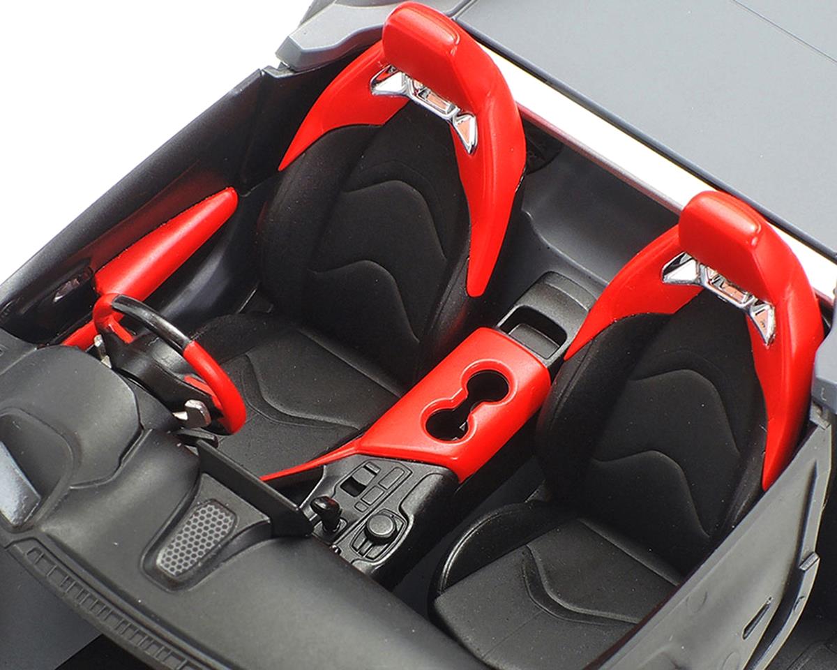 • Presenta una representación realista del interior, con piezas blancas separadas para las secciones rojas, consola central y tablero de múltiples piezas, y asientos con componentes de reposacabezas independientes.