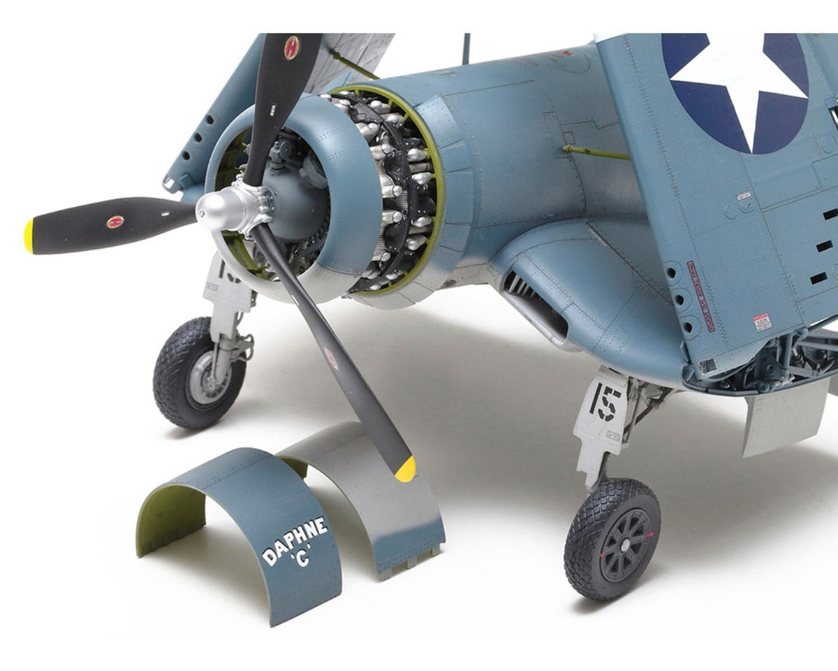 Este modelo viene con dos figuras de pilotos (una sentada y una de pie), tres sets de marcas para las versiones de la Marina y el Cuerpo de Marines de los EE. UU., y un folleto de 12 páginas a todo color que detalla la historia del Corsair. Las piezas de fotograbado recrean los cinturones de seguridad y la malla del enfriador de aceite, mientras que los neumáticos de caucho sintético presentan patrones de banda de rodadura realistas, lo que convierte a este kit en una opción perfecta tanto para exhibición como para fines educativos.