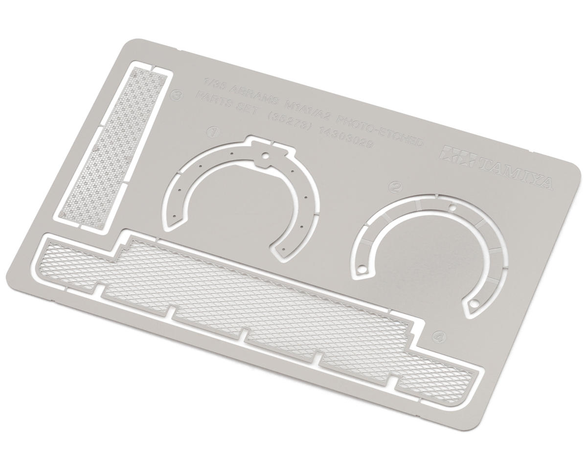 Set de piezas de fotograbado Tamiya para el Tanque de Batalla Principal M1A2 Abrams escala 1/35. Este set de repuesto está diseñado para la maqueta a escala del Tanque de Batalla Principal M1A2 Abrams 1/35 (TAM35269 – Se vende por separado).