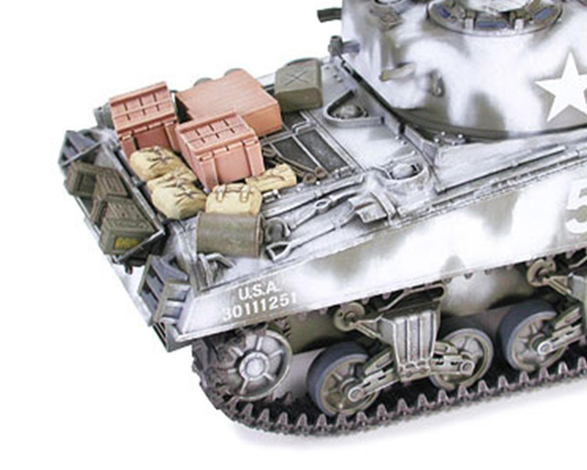 El kit de plástico para armar Tamiya 1/35 M4A3 Sherman 105mm Howitzer. El apoyo de asalto del M4A3 Sherman 105mm Howitzer se une a la Military Miniature Series. Este kit recrea con precisión la imponente apariencia del Sherman de 105mm real e incluye tres figuras de soldados de infantería en poses realistas que te permiten crear un diorama realista. Destacando tanto por su confiabilidad como por su capacidad de producción, la serie de tanques M4 Sherman se convirtió en el vehículo de combate principal de los Aliados en la Segunda Guerra Mundial. Se utilizaron tres tipos de armamento principal en el M4A3; el primer tipo de producción recibió el cañón principal de 75mm. Los tipos posteriores recibieron un cañón principal de 76mm y, finalmente, se adoptó el Howitzer de 105mm para proporcionar apoyo de fuego pesado en los asaltos a puestos enemigos. El Howitzer de 105mm se transportaba en un montaje combinado M52 y podía disparar proyectiles M1 en ángulos de -10 a +35 grados, con un impresionante alcance de aproximadamente 11,500 m. Los tanques M4A3 Sherman 105mm Howitzer desempeñaron un papel indispensable en la destrucción de posiciones enemigas por parte de la infantería estadounidense que luchaba en el frente.