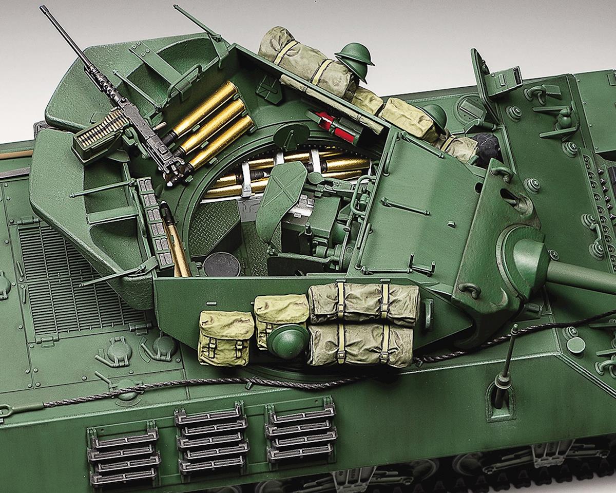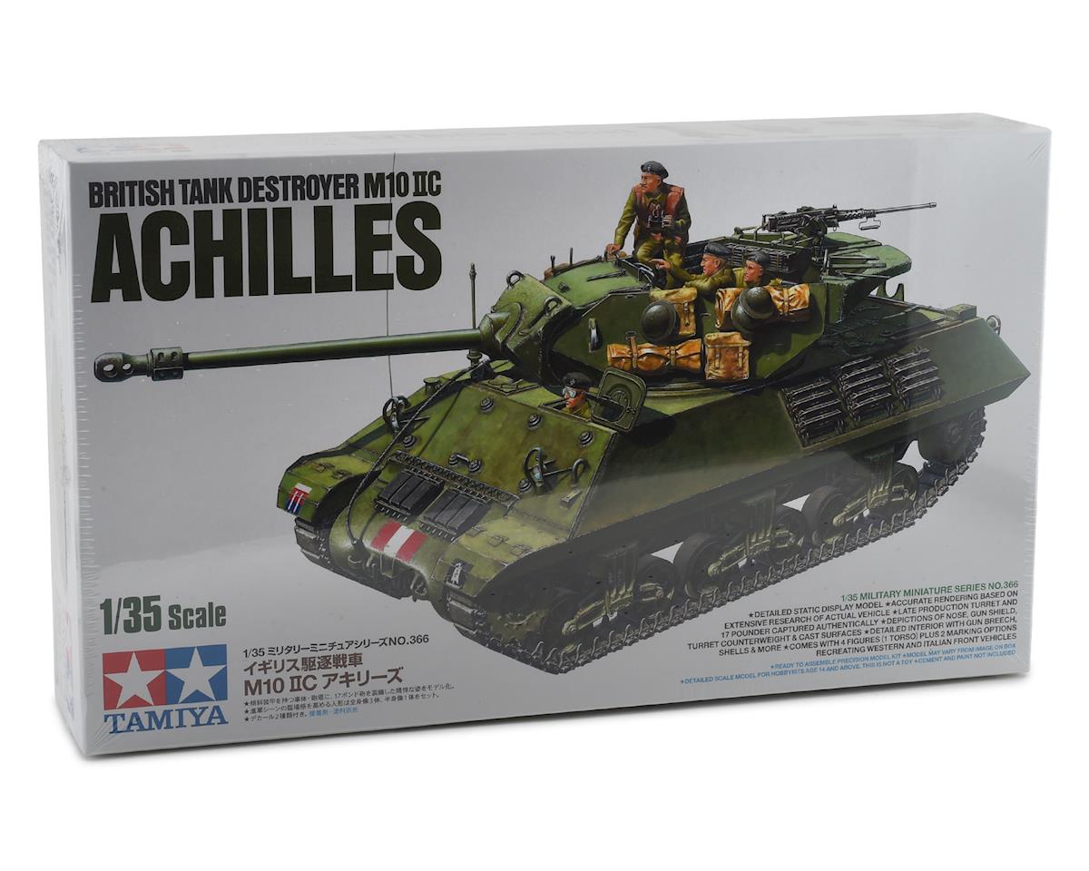 Este es un Tamiya 1/35 Cazacarros Británico M 10 IIC Achilles, una maqueta a escala del cazacarros británico Achilles. El Achilles fue una modificación de los M10 que Gran Bretaña recibió de los EE. UU., con el cañón principal original de 3 pulgadas reemplazado por el temible cañón británico de 17 libras. La gran mayoría de los M10 eran la variante M10 IIC, que se basaba en el M10 de producción tardía con el distintivo contrapeso trasero de la torreta ampliado. Se produjeron alrededor de 1,000 entre la primavera de 1944 y el final de la Segunda Guerra Mundial; las fuerzas aliadas le dieron un buen uso después de los desembarcos de Normandía, beneficiándose de la potencia del cañón que le permitía atravesar el blindaje frontal del Tiger I.
