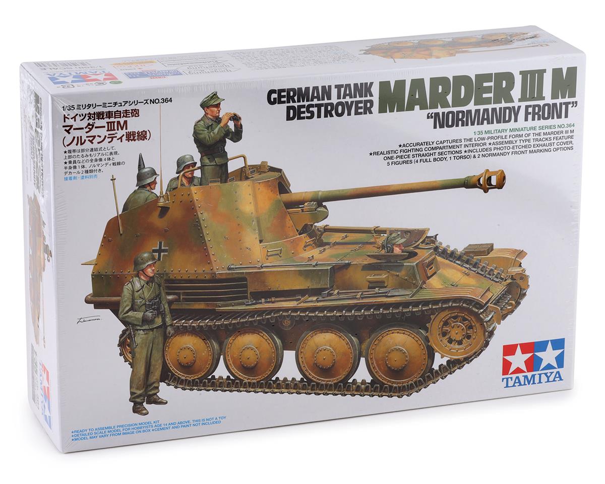 El Kit para armar Tamiya Tanque Alemán Marder III M 1/35 combina el clásico Marder III M con figuras actualizadas y piezas adicionales en comparación con el kit original (TAM35255). Estas piezas incluyen calcomanías para ensamblar el modelo como un vehículo visto en el Frente de Normandía en los años finales de la Segunda Guerra Mundial.