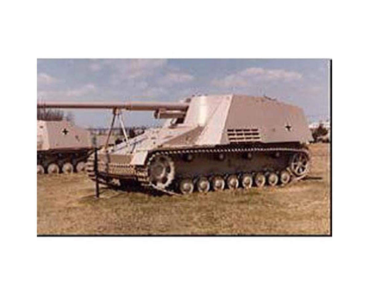 Este es un kit para armar de destructor de tanques pesado alemán Nashhorn de Tamiya en escala 1/35. Este es un modelo altamente detallado del destructor de tanques alemán Nashhorn de la Segunda Guerra Mundial. El vehículo de tamaño real contaba con un cañón de 8.8 cm, también conocido como PAK 43, el cual estaba montado en la superficie superior de un chasis ligero sin torreta. A pesar de que el vehículo estaba ligeramente blindado, el arma PAK 43 era capaz de penetrar 190 mm de blindaje a 1,000 metros. El Nashorn entró en acción con los batallones antitanque pesados alemanes, combatiendo a las fuerzas soviéticas y aliadas durante gran parte del conflicto. Debido a su costo relativamente bajo y su movilidad superior en comparación con tanques más pesados, se mantuvo en producción hasta el final de la Segunda Guerra Mundial.
