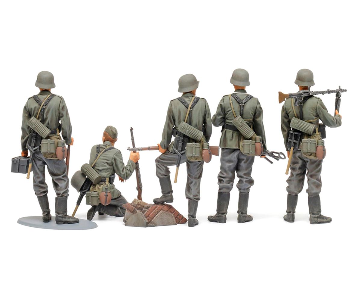 El Kit de plástico para armar de Infantería Alemana de mediados de la Segunda Guerra Mundial Tamiya escala 1/35 es un gran accesorio para mejorar el realismo de su maqueta a escala o diorama. Este set de figuras alemanas de la Segunda Guerra Mundial fue diseñado utilizando las últimas técnicas de escaneo y modelado. Las figuras representan a la infantería de la Wehrmacht de 1941-42, cuando las fuerzas alemanas estaban involucradas en intensos combates, especialmente en el Frente Oriental. También incluye una gran variedad de accesorios.