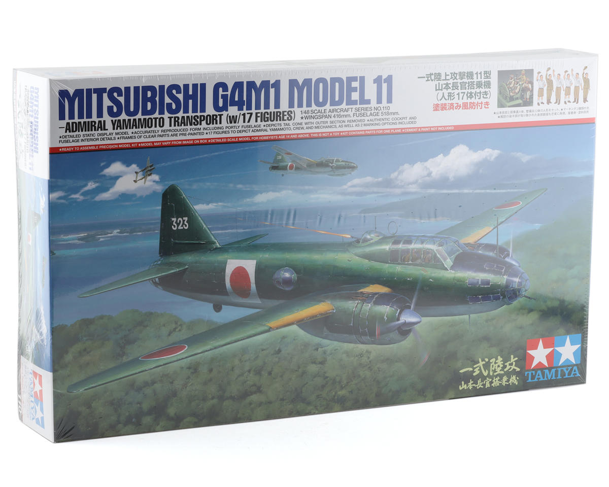 El Mitsubishi G4M1 Modelo 11 de Tamiya en escala 1/48 es un kit para armar de avión altamente detallado con 17 figuras. El Mitsubishi G4M1 Modelo 11 fue adoptado oficialmente en 1941 como el sucesor del bombardero Tipo 96. Con un largo alcance de vuelo que le permitía atacar flotas enemigas desde bases terrestres, sirvió como el bombardero basado en tierra de la Armada Imperial Japonesa en las Islas Salomón en 1942. A la mayoría de los G4M1 durante la campaña de las Islas Salomón se les retiraron los conos de cola exteriores para proporcionar un mejor campo de tiro para el cañón de 20 mm montado en la cola. Tamiya ha recreado fielmente este modelo a escala 1/48.