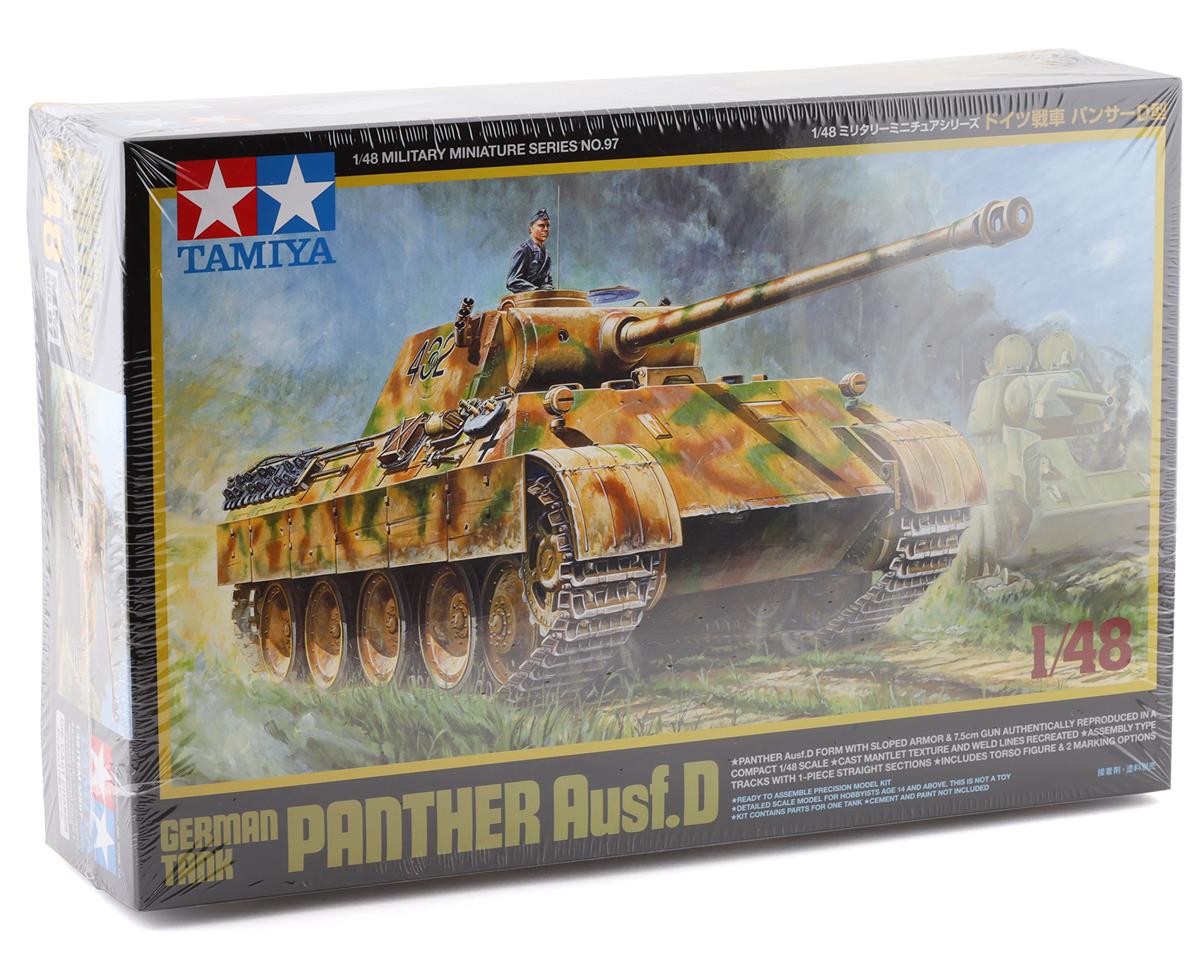 El Kit de tanque para armar Tamiya German Panther Ausf D escala 1/48 es un kit para armar en miniatura que recrea el Panther Ausf.D, la primera variante del altamente valorado tanque alemán. Desarrollado en parte como respuesta al T-34 soviético, el Panther ofrecía un paquete de rendimiento completo, con un imponente cañón L/70 de 7.5 cm, armadura inclinada para una supervivencia superior y una excelente maniobrabilidad. Se produjeron alrededor de 840 Panther Ausf.D entre enero y septiembre de 1943.