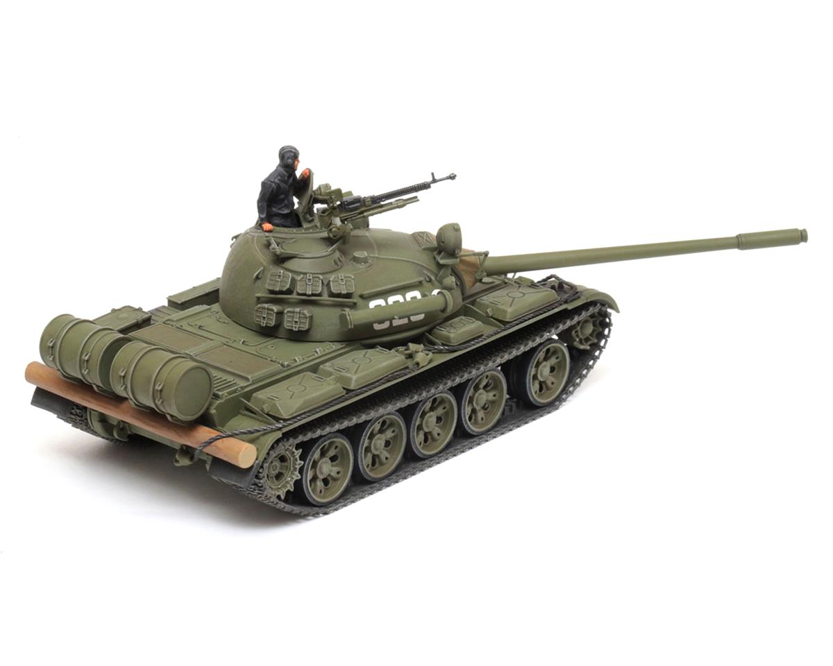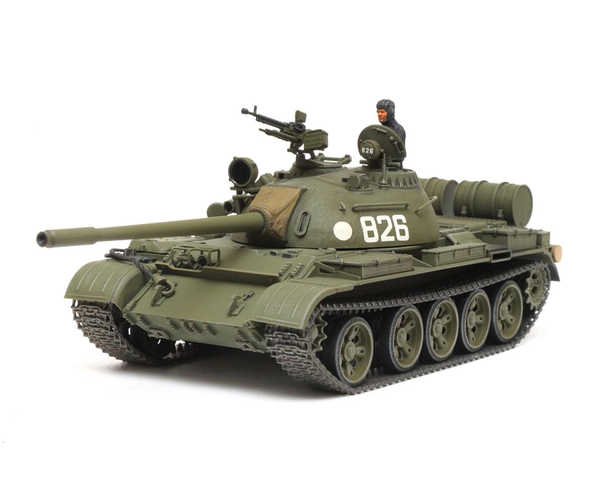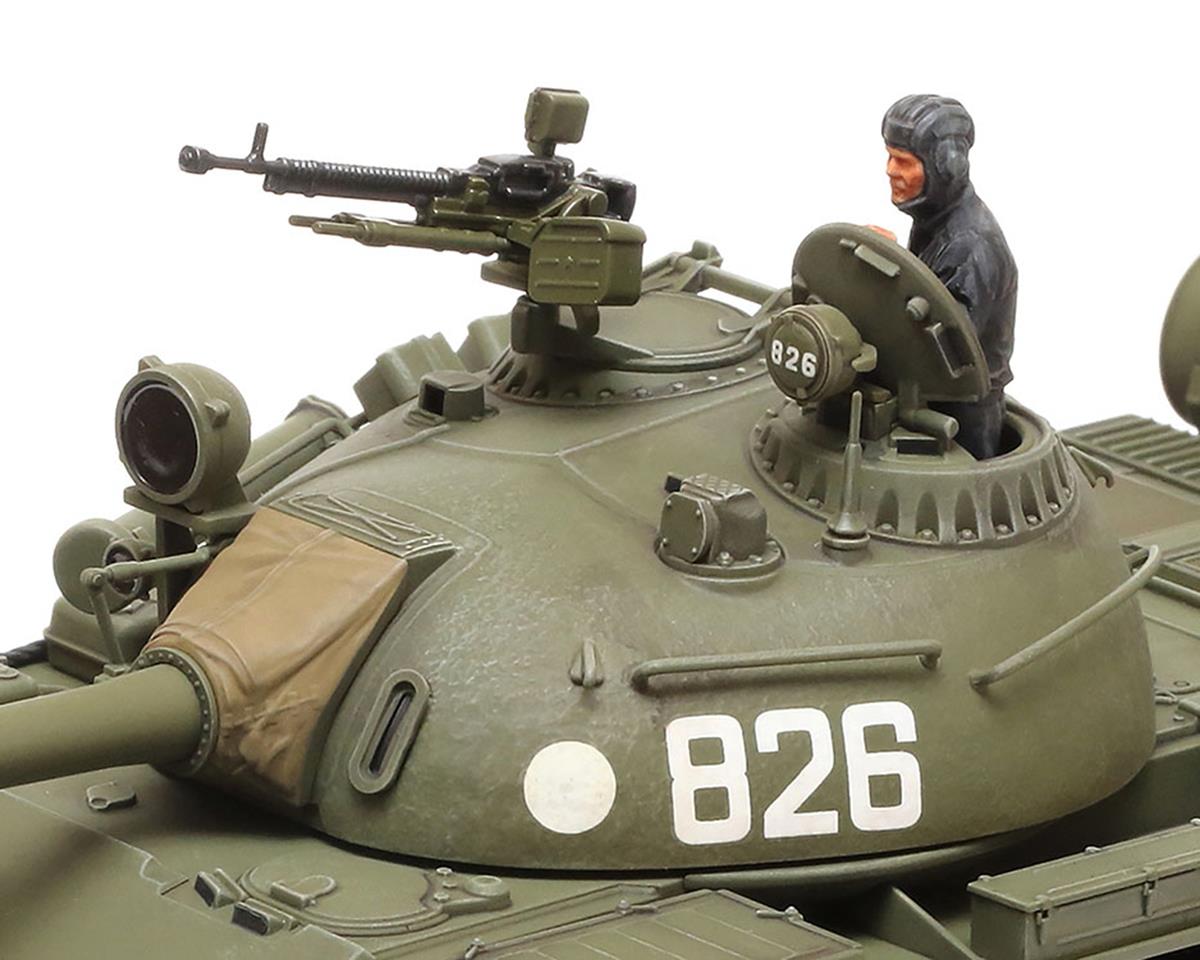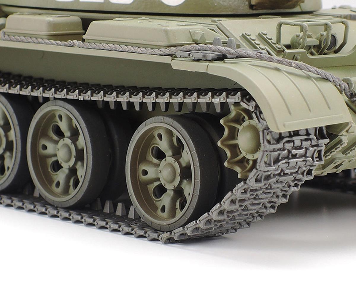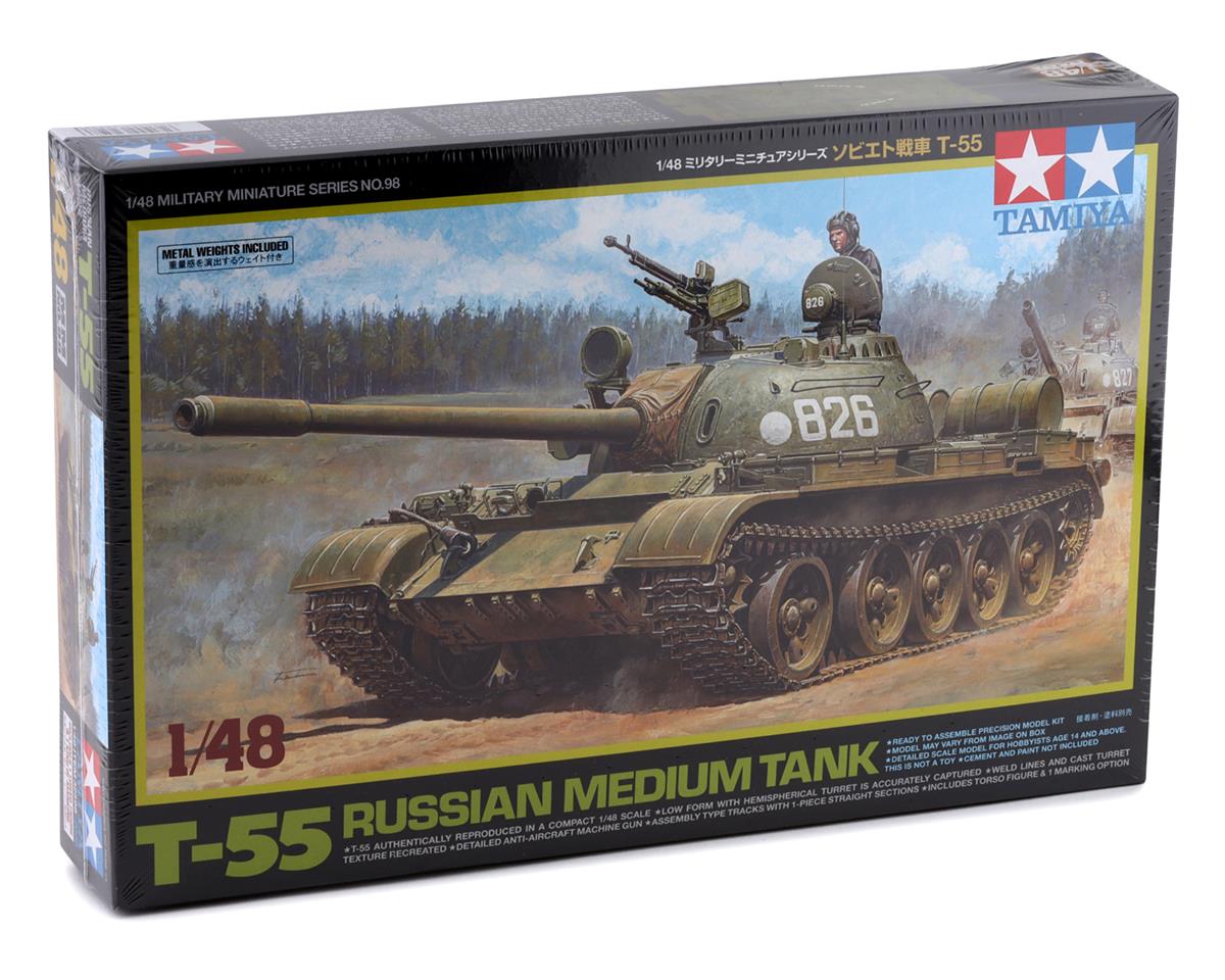 El kit para armar tanque ruso T-55 Medium Tank a escala 1/48 de Tamiya es una versión a menor escala del favorito de los fans, el T-55 a escala 1/35. El tanque mediano T-55 no solo sirvió de base para los diseños posteriores del T-62, T-72 y T-80 que aún se utilizan hoy en día, sino que también impulsó a sus rivales occidentales y contribuyó a la gran carrera armamentista entre el Este y el Oeste durante la Guerra Fría. Su cañón de 100 mm se comparaba favorablemente con su contraparte occidental de 90 mm, y con proyectiles HEAT podía penetrar hasta 390 mm de blindaje. El T-55 se produjo en la URSS, y bajo licencia en Checoslovaquia y Polonia, y se suministró a países soviéticos y clientes de todo el mundo; incluso se enfrentó a los M48 y M60A1 de diseño estadounidense en el Medio Oriente.