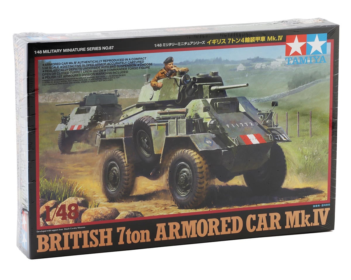 Regresa a la historia de la Segunda Guerra Mundial con el British 7ton Armored Car Mk.IV de Tamiya a escala 1/48, una maqueta a escala altamente detallada que captura la potencia, velocidad y presencia en el campo de batalla de uno de los vehículos de reconocimiento más icónicos de Gran Bretaña.