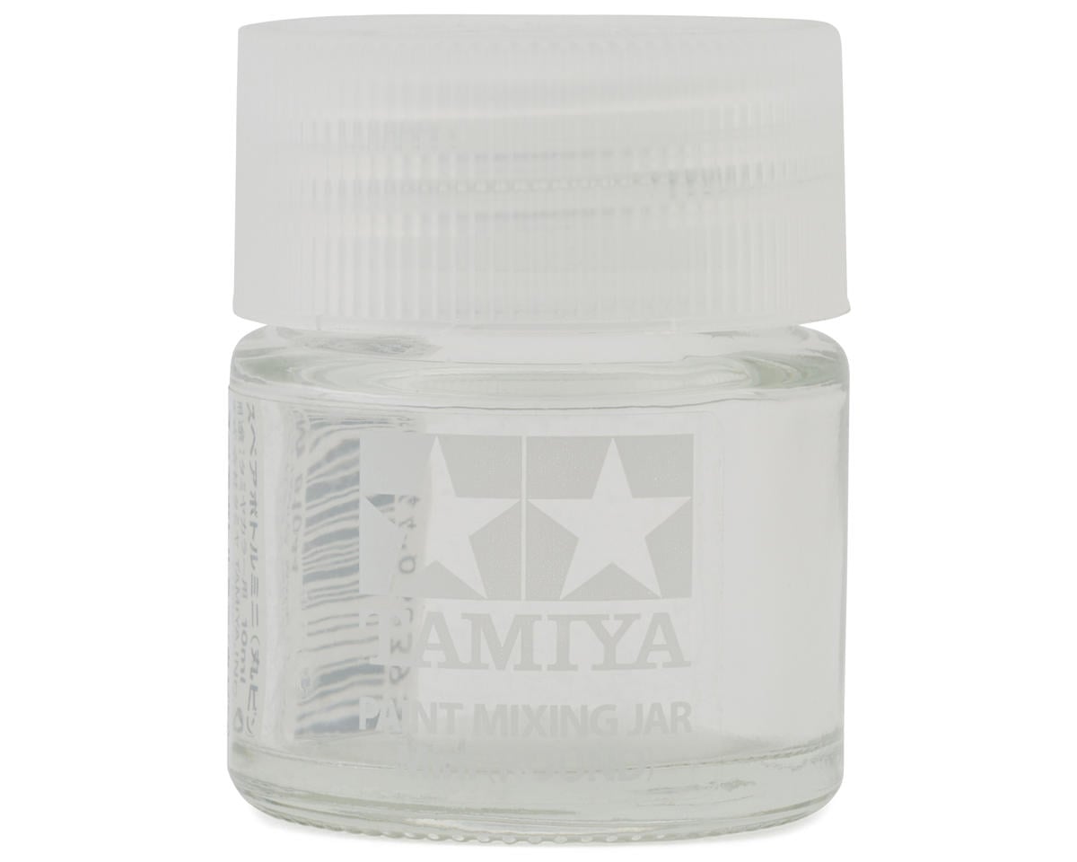 Frasco mezclador Tamiya de 10ml formato redondo para preparar y almacenar mezclas de pintura. Compatible con pinturas acrílicas y lacas Tamiya.