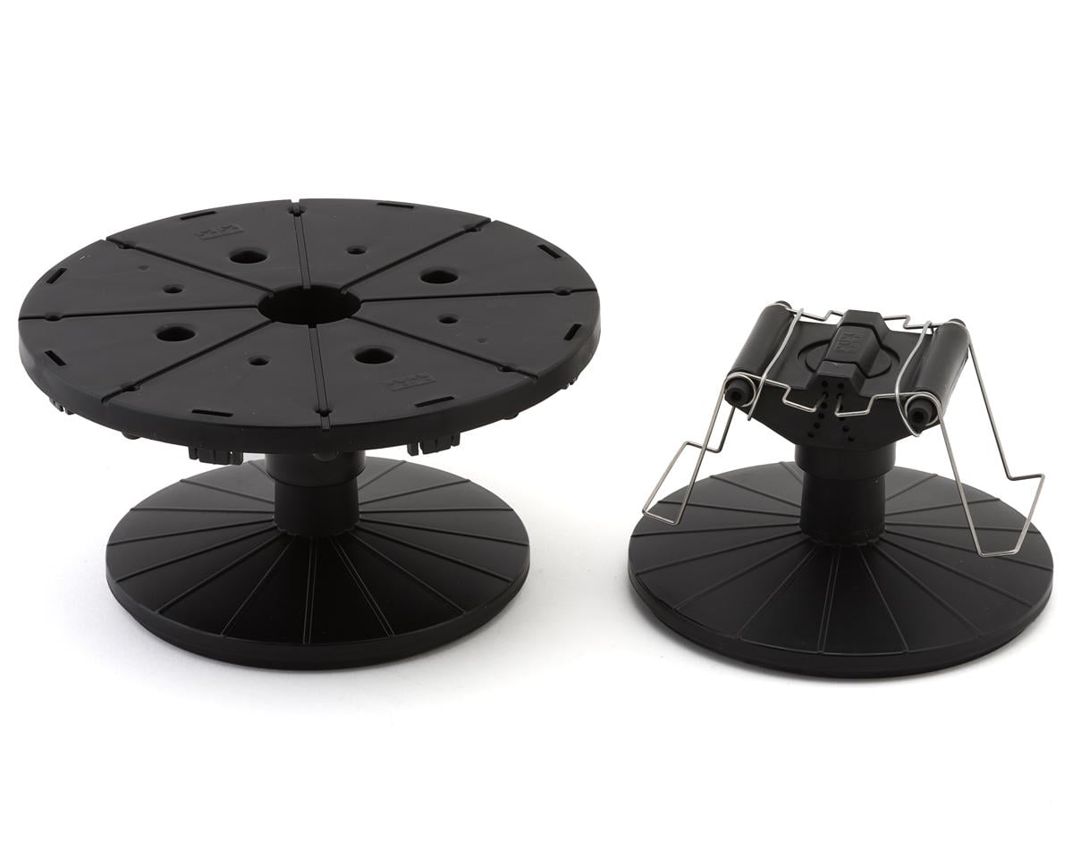 El Set de bases para modelos de Tamiya es un accesorio multiusos para modelistas que incluye dos bases fáciles de usar que le permitirán mantener sus manos libres y facilitar las sesiones de pintura. Ambas bases pueden ajustarse y utilizarse para una amplia gama de piezas de diversos tamaños y formas, y son un excelente accesorio para una cabina de pintura. La base giratoria de 16 cm de diámetro cuenta con orificios de diferentes tamaños para fijar varias piezas a la base. Las piezas se pueden pintar fácilmente mientras aún están en el sprue o se pueden fijar a algo como un lápiz o un palillo insertado en los orificios más grandes. Incluye cuatro clips de resorte. Al fijar la carrocería de un modelo a la base desde el interior, el soporte para carrocerías es perfecto para la pintura en spray de autos a escala 1/24. El ancho de los clips también se puede ajustar para obtener la sujeción más estable.