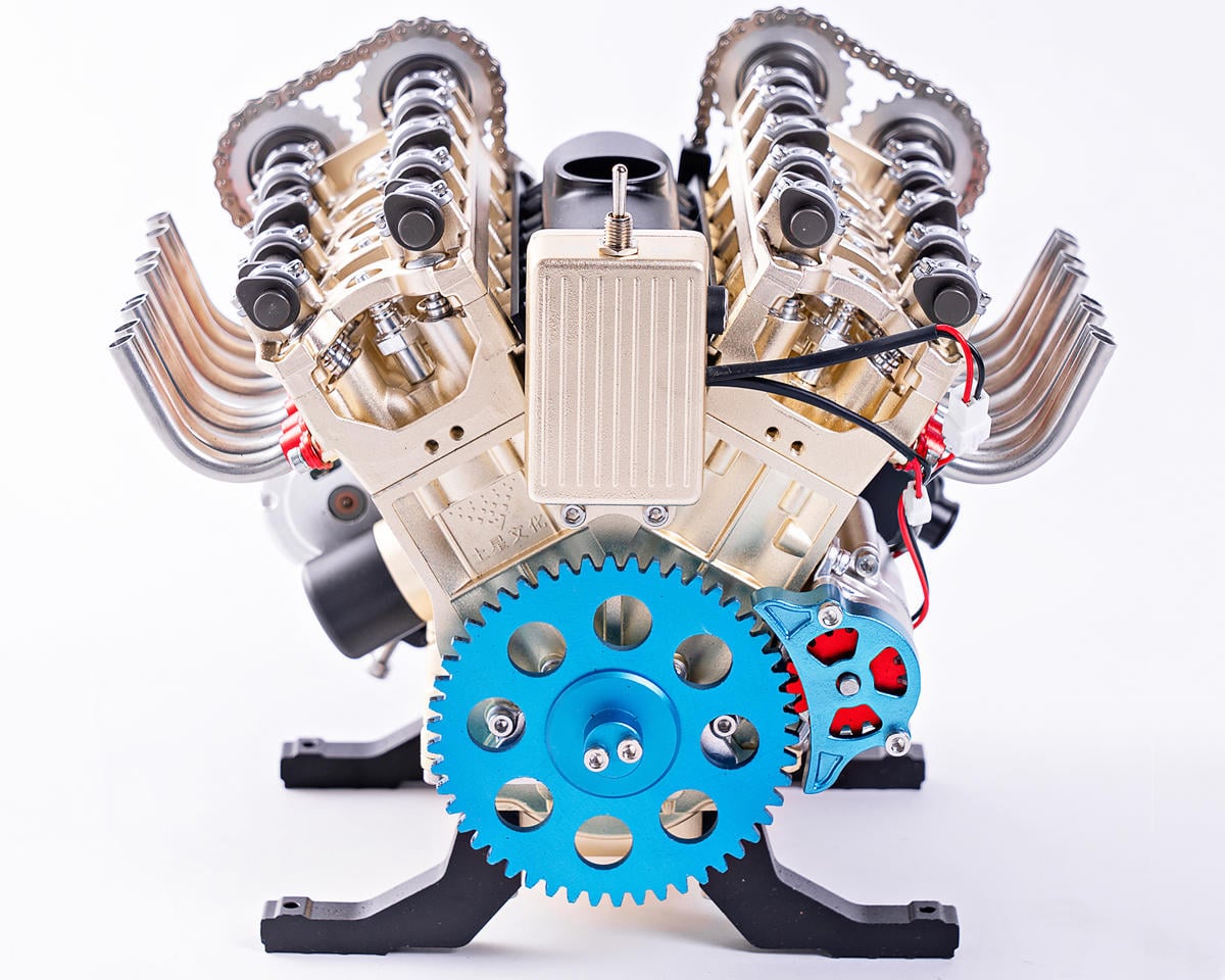 Equipado con un mecanismo de control de válvulas a la cabeza por levas, este modelo permite a los usuarios ver cómo se coordinan los ciclos de admisión y escape para una combustión eficiente. El sistema de transmisión por cadena de levas mejora aún más el realismo, ilustrando cómo los componentes de sincronización sincronizan el árbol de levas y el cigüeñal. Estas características funcionales brindan una mirada educativa a la mecánica interna que impulsa a muchos automóviles legendarios.