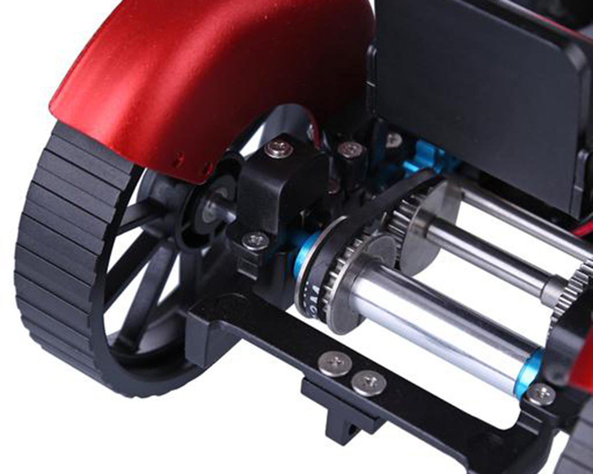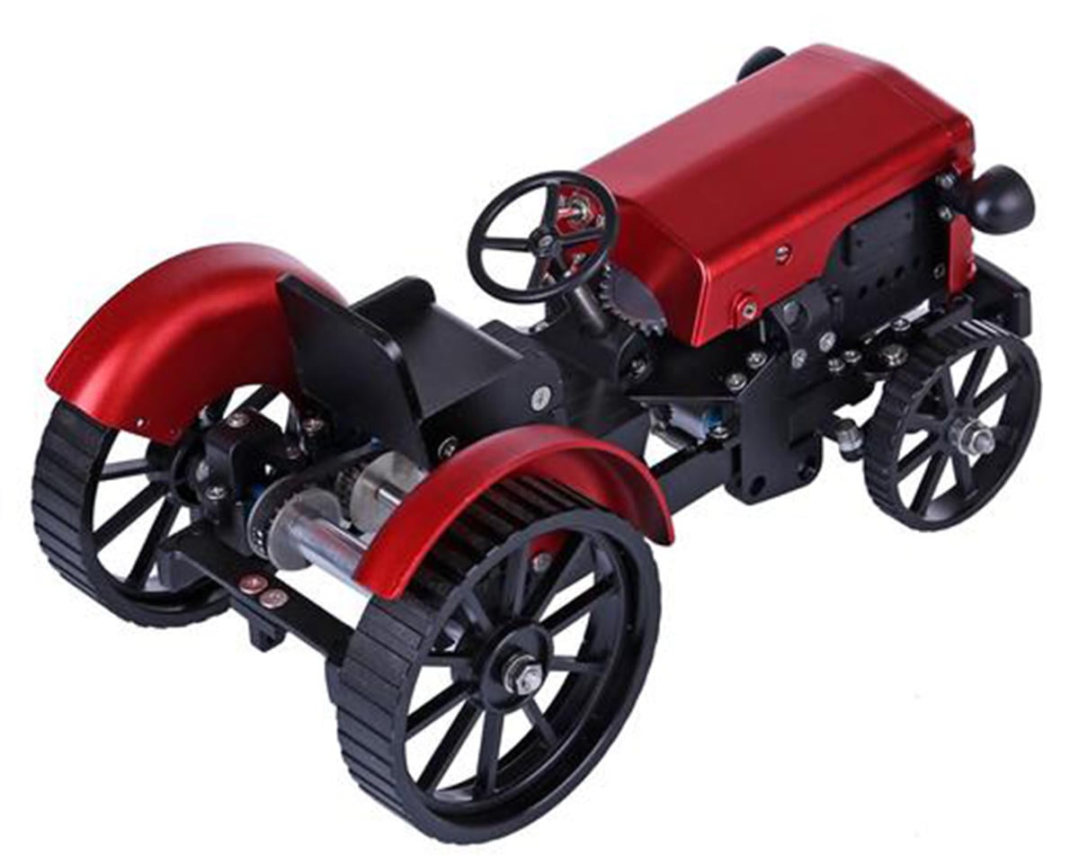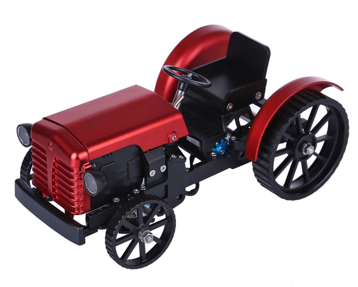 Un sistema de dirección de tornillo está integrado en el chasis, replicando el movimiento de dirección controlado e impulsado por torque que se utiliza en ciertos equipos industriales. Este mecanismo proporciona un movimiento direccional suave y preciso, lo que hace que el tractor RC sea tanto funcional como educativo. El diseño permite a los usuarios ver claramente cómo los varillajes de dirección mecánica convierten el movimiento rotativo en ángulos de rueda precisos.